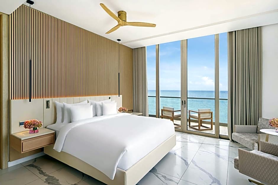 This spacious suite consists of a kitchen, a seating area, 1 separate bedroom and 1 bathroom with a walk-in shower and a bath. The suite's kitchen, which features a stovetop and a refrigerator, is available for cooking and storing food. The air-conditioned suite provides a TV with satellite channels, soundproof walls, a mini-bar, a tea and coffee maker as well as sea views. The unit offers 1 bed.
